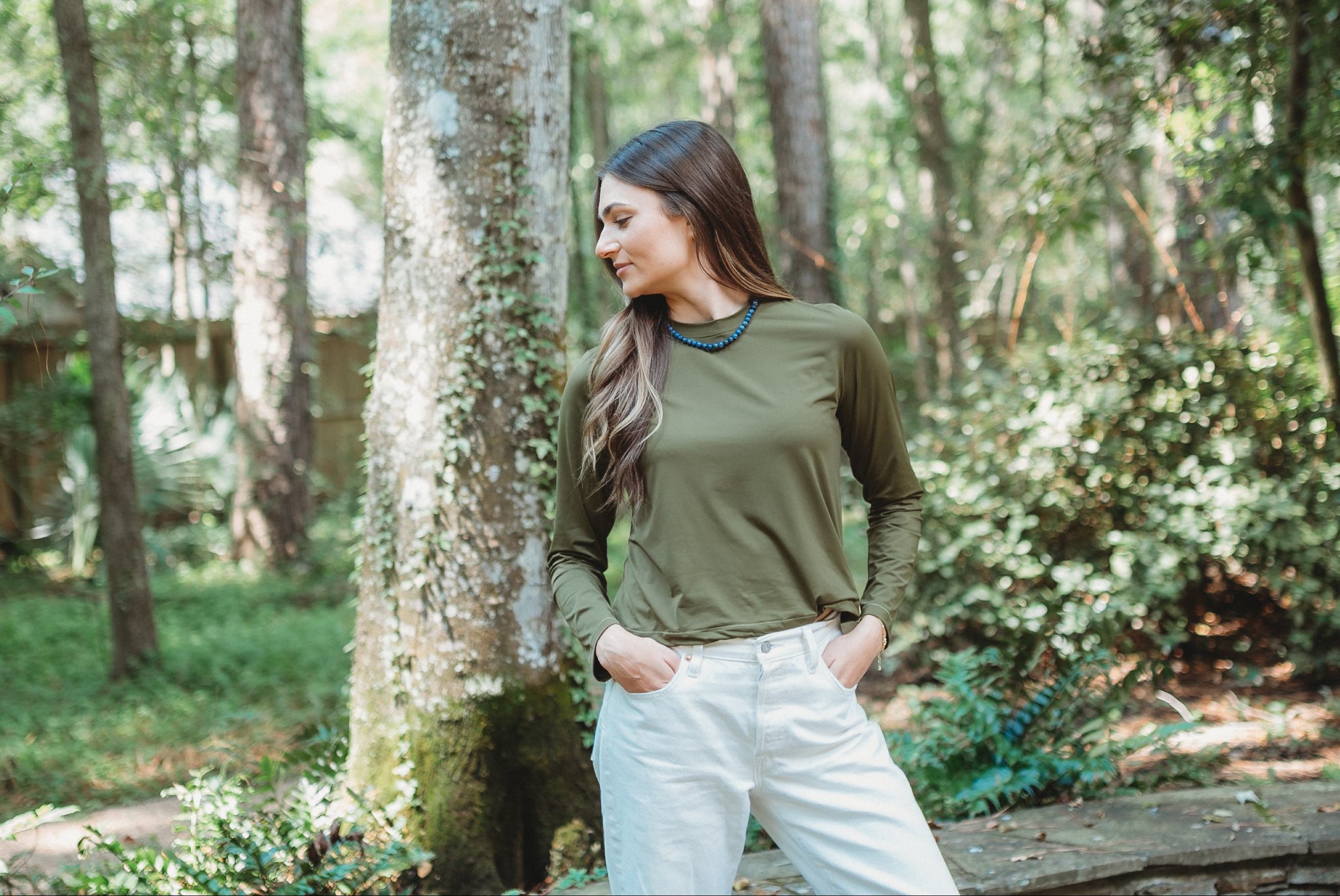 I have super sensitive skin and usually dread being in the sun too long. This shirt makes it so much better. The fabric is lightweight, breathable, and feels luxe. It’s my new go-to for outdoor art markets and patio lunches.